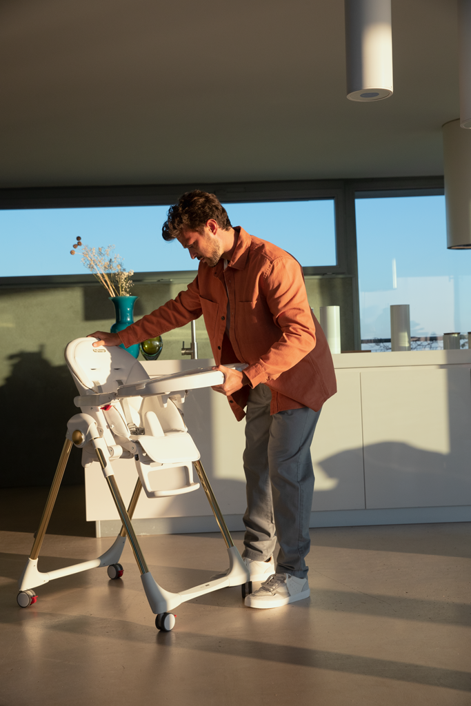 The Prima Pappa follow me high chair is approved for use from birth and can also serve as a comfortable recliner.With its 4 wheels, Prima Pappa follow me follows you everywhere.
