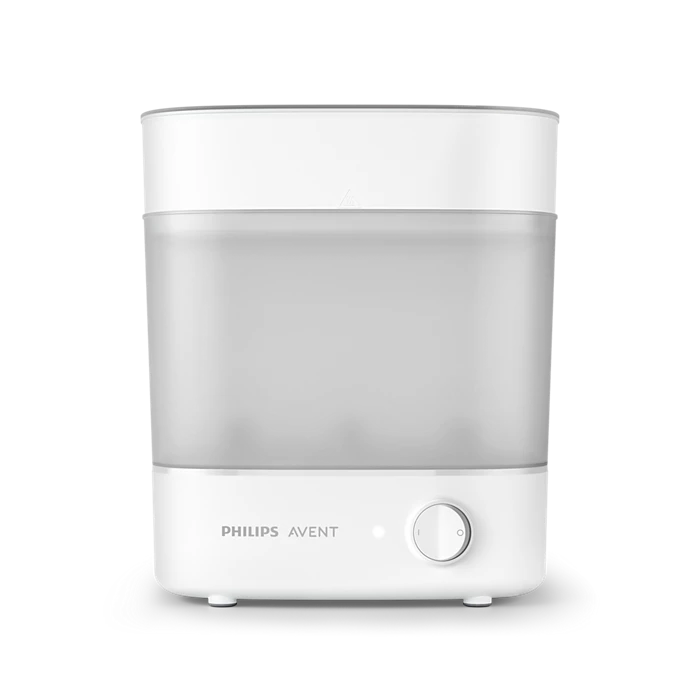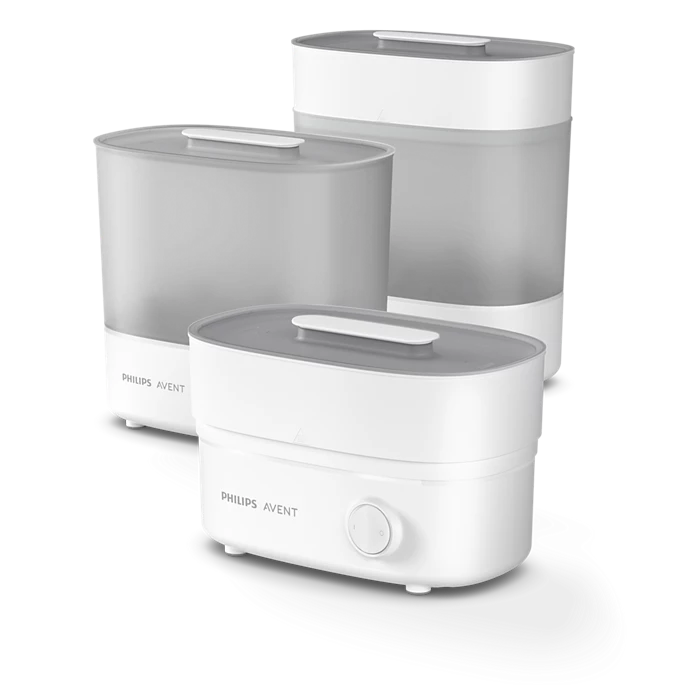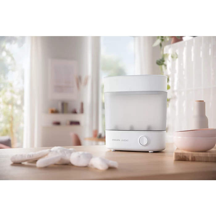 Sterilize up to six feeding bottles with accessories in just 10 minutes. The slim but roomy Bottle Sterilizer Advanced is fast and efficient, killing 99.9% of germs* for peace of mind at every feed