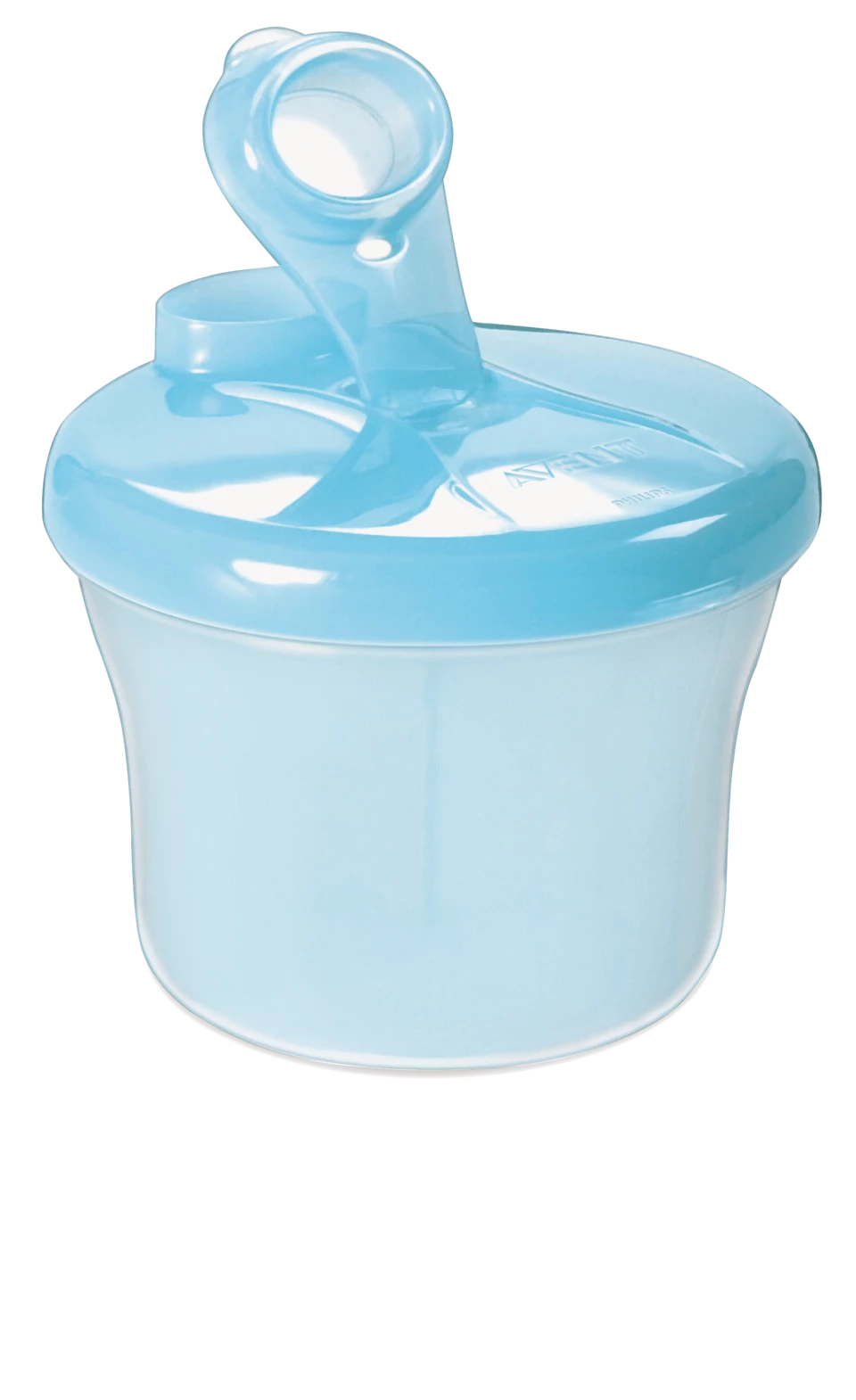 This handy little unit carries three pre-measured portions of milk powder in separate compartments. When you're ready to feed, just pour the powder into the bottle of pre-boiled cooled water. When the baby is older, remove the inner sections to the container as a bowl or snack cup. It's perfect for travel or for use at home. The Philips AVENT Milk Powder Dispenser holds enough powdered formula for three 260ml feeds. The entire dispenser is sterilizable, microwavable, and dishwasher-safe.