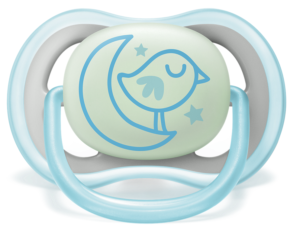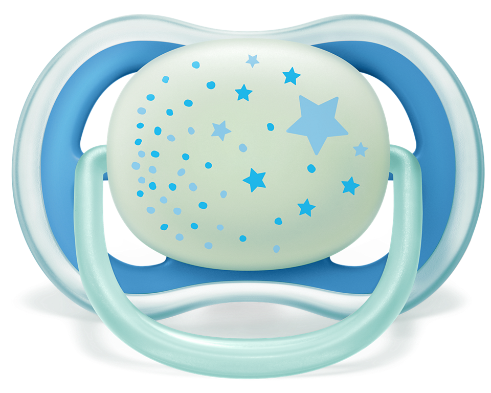 Soothe with the comfort of air. The Philips Avent ultra air has extra-large holes to keep skin dry. It has a glow-in-the-dark button so you can see it when the lights are out. Available in various colors and designs