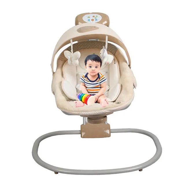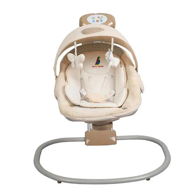 Low profile frame, appropriate for newborns (can be extended as the baby grows) calming vibrations soothe the baby like a ride in the car. Reposition seat closer to toy bar for interactive play birdie plug-in toy sits within baby's reach. Baby bats at the hanging toy to activate fun music toy bar swings away for naptime removable toy bar. The reposition seat is closer to the toy bar for more comfortable interactive play.