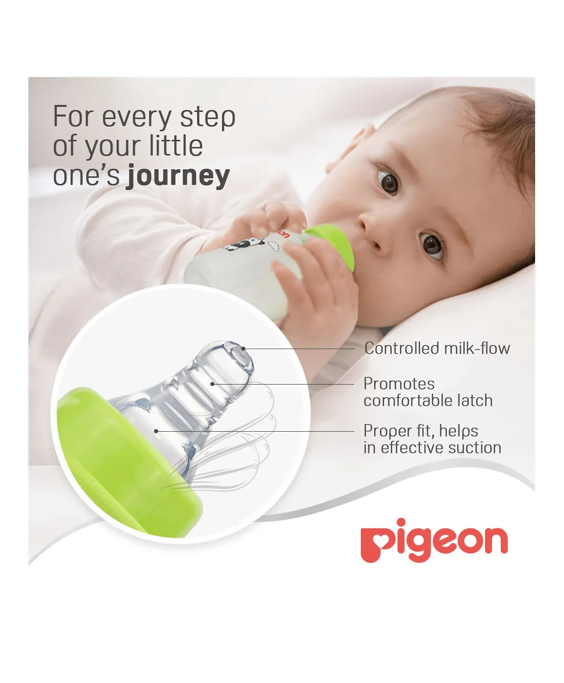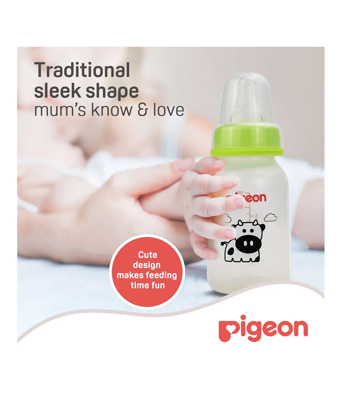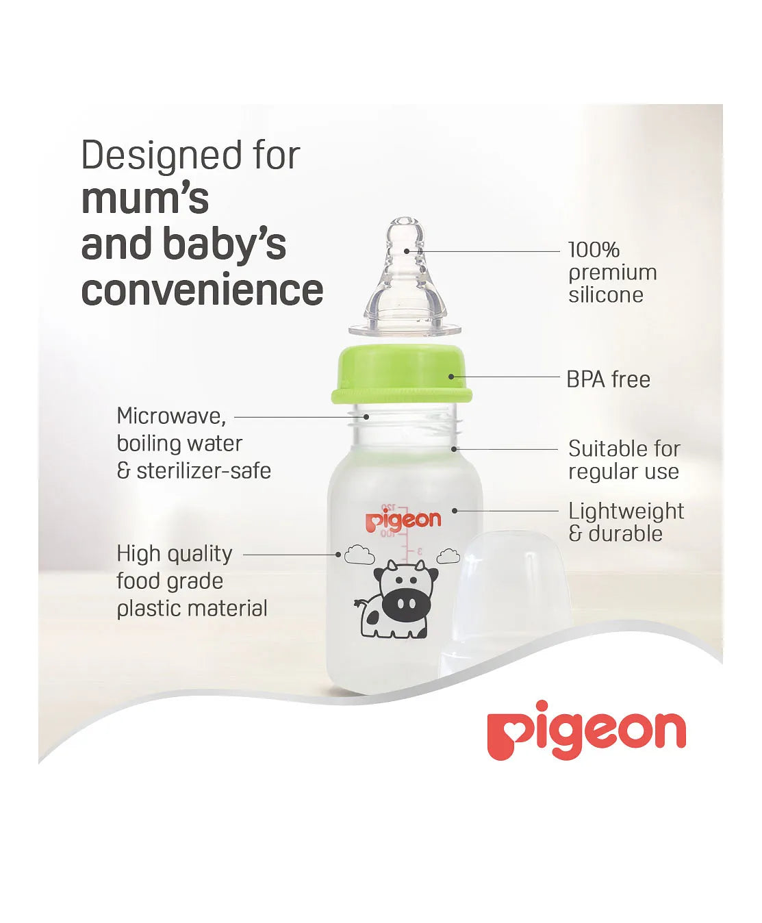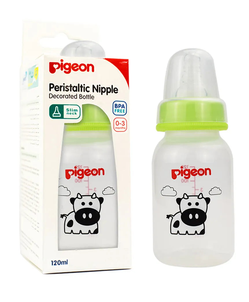 Pigeon peristaltic nipple plastic feeding bottle is a healthy start to a baby's independent eating habits.