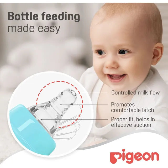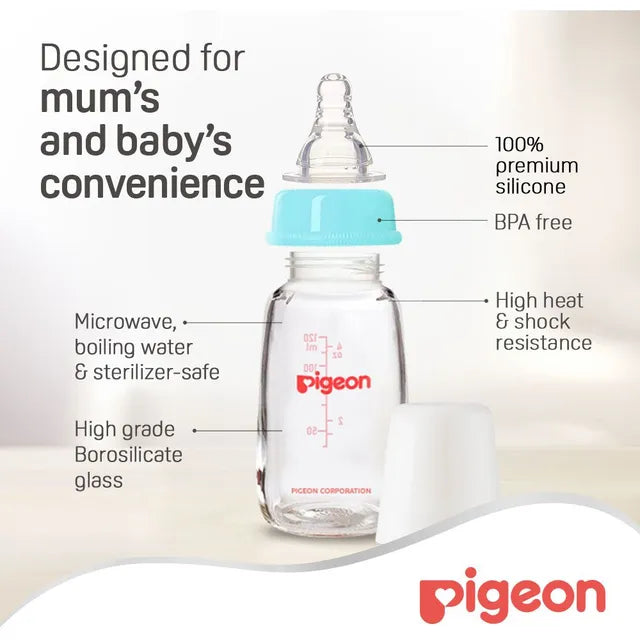 Breastmilk is the best source of nutrition for your baby. In addition, the time spent breastfeeding strengthens the bond between mother and baby. However, where bottle-feeding is necessary, we recommend using the PIGEON Peristaltic Nipple to encourage baby's natural tongue movement. The ultra-soft silicone rubber with double thickness ensures ideal softness and elasticity so baby can latch on easily and comfortably. The shape fits perfectly with your baby's tongue, allowing smooth tongue movement while minimising air intake. The nipple's roomy base helps your baby open his mouth widely, thereby encouraging steady peristaltic motion. The streamlined shape makes it easy for mothers to hold and keep clean. Made of Premium quality borosillicate glass material with excellent transparency and high heat resistance BPA Free