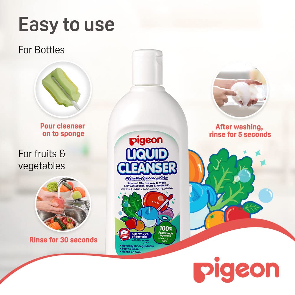 Pigeon Liquid Cleanser is made from edible carbohydrate derivatives. It effectively cleans fats and dirt off baby bottles and other feeding devices, leaving them not only clean but also bacteria free. This baby liquid cleanser from Pigeon prides itself with being stronger than most regular kitchen detergents. Yet it is extremely safe for use on all things applicable to a baby. So assure your baby of a 99.99 percent germ-free environment with this effective Pigeon liquid cleanser.