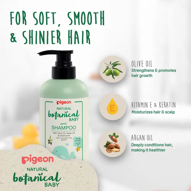 A fun and safe bathing experience for your baby. Suitable for sensitive skin, Pigeon Botanical Baby Shampoo is perfect for regular use because of its gentle formula, perfect for delicate baby skin. This baby shampoo cleans your baby's hair and scalp gently, leaving it silky, tangle-free, and healthy.