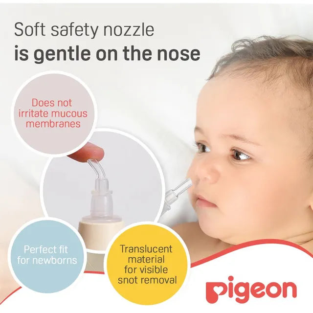 - Soft silicone safety nozzle is gentle on baby's mucous membranes