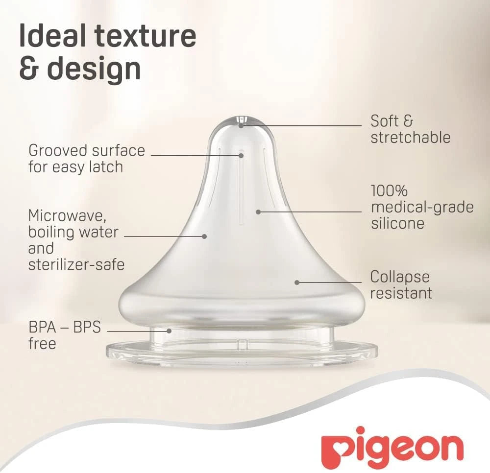 A research-based innovation designed to enable baby to replicate natural sucking pattern learned at the breast. It caters to the 3 key steps when a baby sucks: Latching On, Peristaltic Tongue Movement and Swallowing. By having a smooth transition between feeding from breast to bottle, mums need not worry for the issue of nipple confusion.