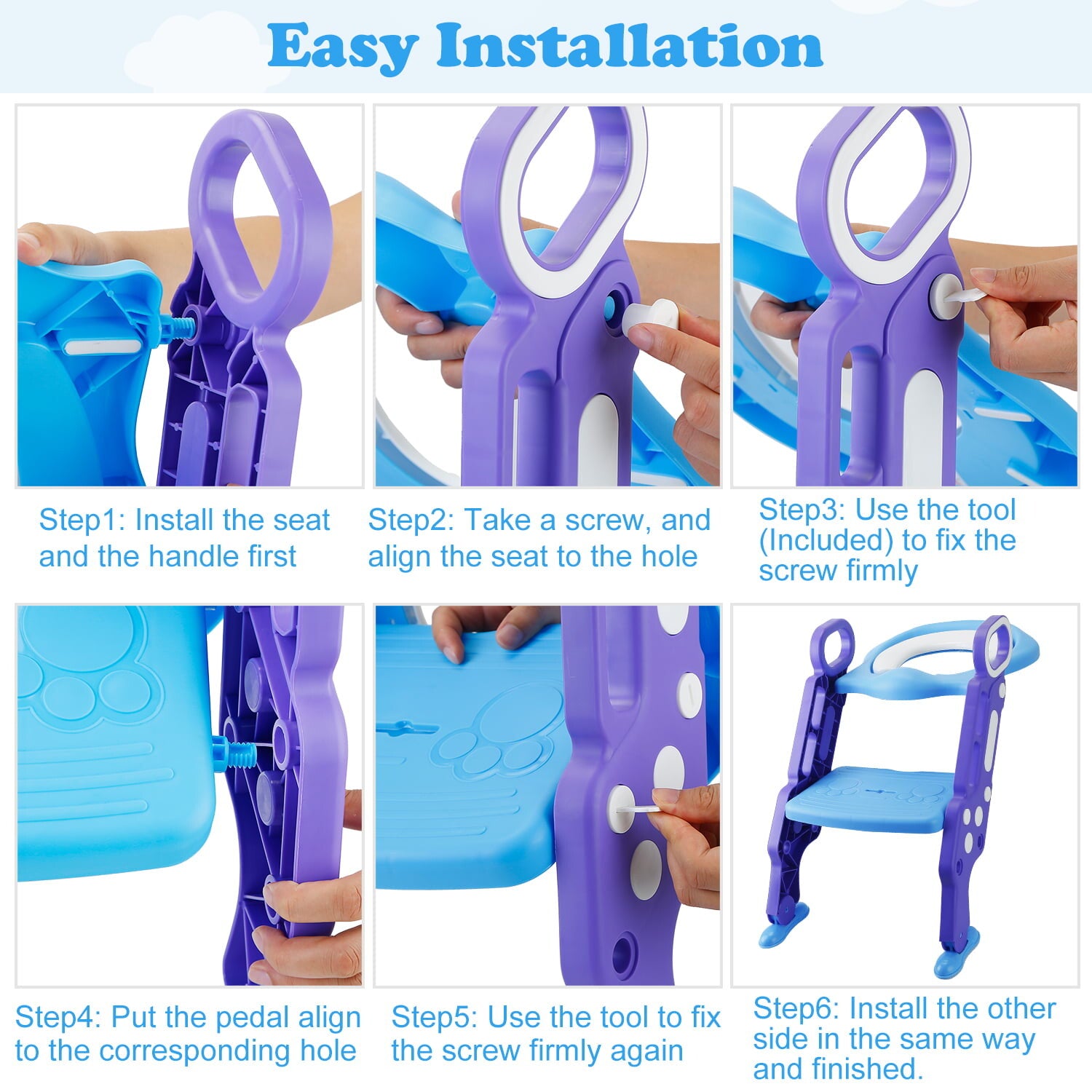 • Adjustable Steps: The ladder features adjustable steps, allowing it to grow with your child and accommodate different toilet heights.