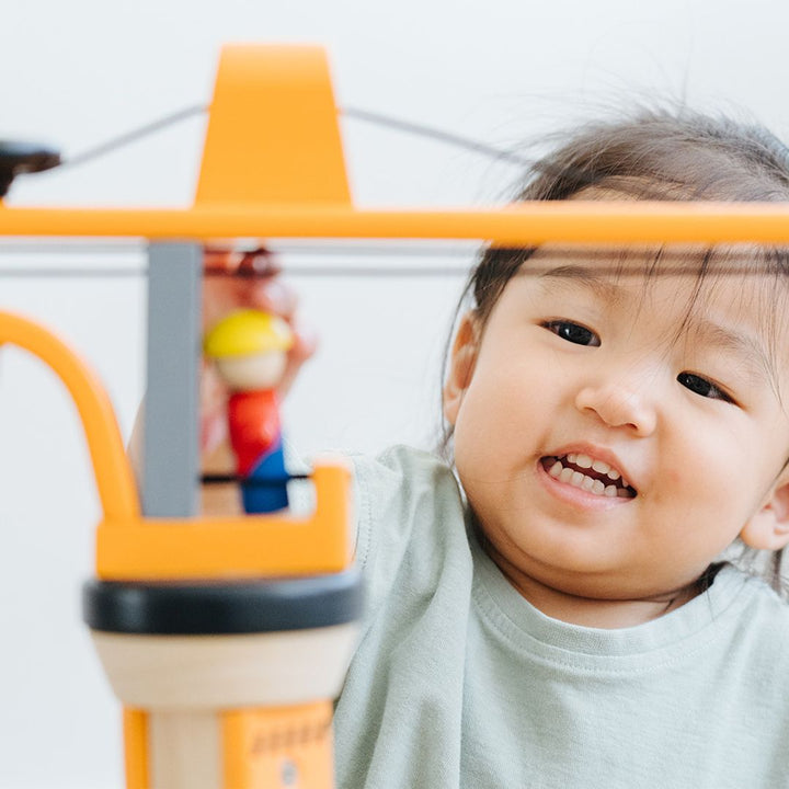 This set includes everything young builders need for a realistic construction scene: a crane with a working pulley, a concrete mixer, construction and street hazard signs, and two construction worker figures. With the rotating crane and pulley system, children can load and move building materials, creating and exploring their very own PlanWorld. This set fosters imaginative development and hands-on learning through small world play.