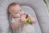 This palm-clutching toy is designed to fit in a child’s hand. The fun legs wiggle as they are pinched and pressed. It stimulates babies to practice grasping objects to develop capable palms and fingers. This toy will capture babies’ attention and provide a sensory and tactile experience. Product: cm 7.2 x 7 x 5