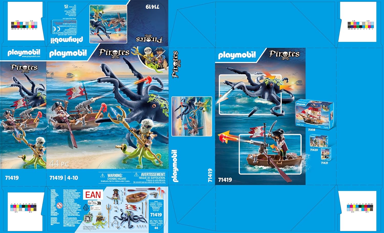 Dive into an epic underwater adventure with the Playmobil Battle against the Giant Octopus playset! This thrilling set pits a heroic diver against a massive, fearsome octopus. The diver is equipped with a functional underwater scooter, and a grapple hook gun to navigate the deep and a knife to defend himself. The giant octopus features tentacles that can be moved and posed, making for a truly dynamic and action-packed play experience. The set also includes two large red fish, adding more life to the underwater scene. This playset is perfect for children who love action and adventure, encouraging imaginative storytelling about courage, exploration, and the mysteries of the deep sea.