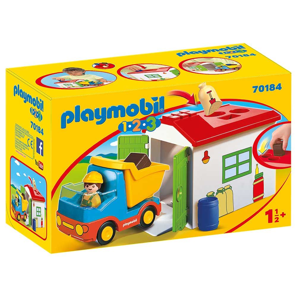 Ideal for children aged 18 months and over, the Playmobil 1.2.3 toy range helps little ones learn all about different careers and the world around them. The Playmobil 70184 1.2.3 Garbage Truck features a sorting function in the roof of the shed. The double doors open to fit the Garbage Truck inside. The truck also comes with a tilting trailer to help the driver load and unload the truck easily.