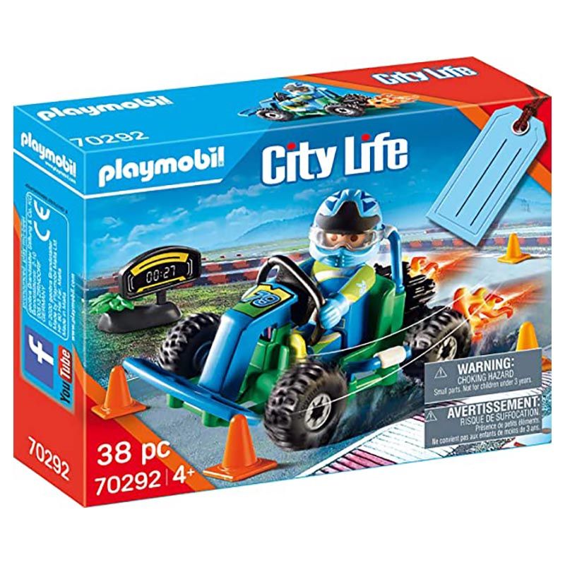 - The Go-Kart Racer Gift Set features a kart for 1 figure, and a movable steering wheel. The playset also includes traffic cones for building a race track, and the packaging features a gift tag to complete!