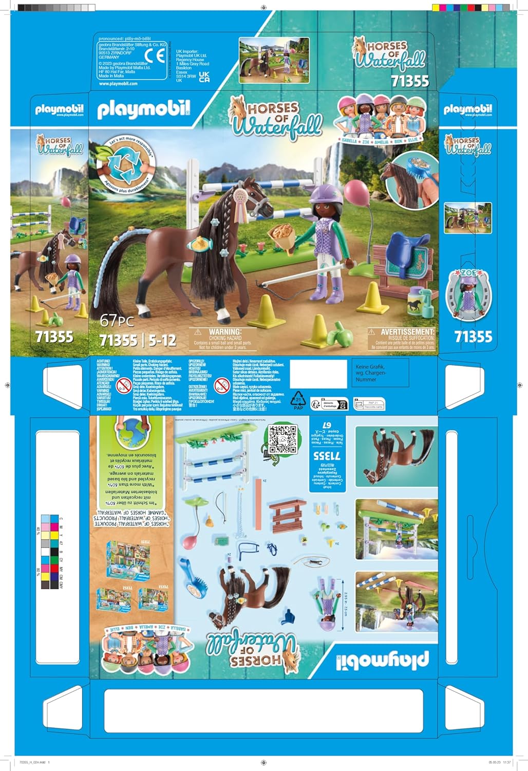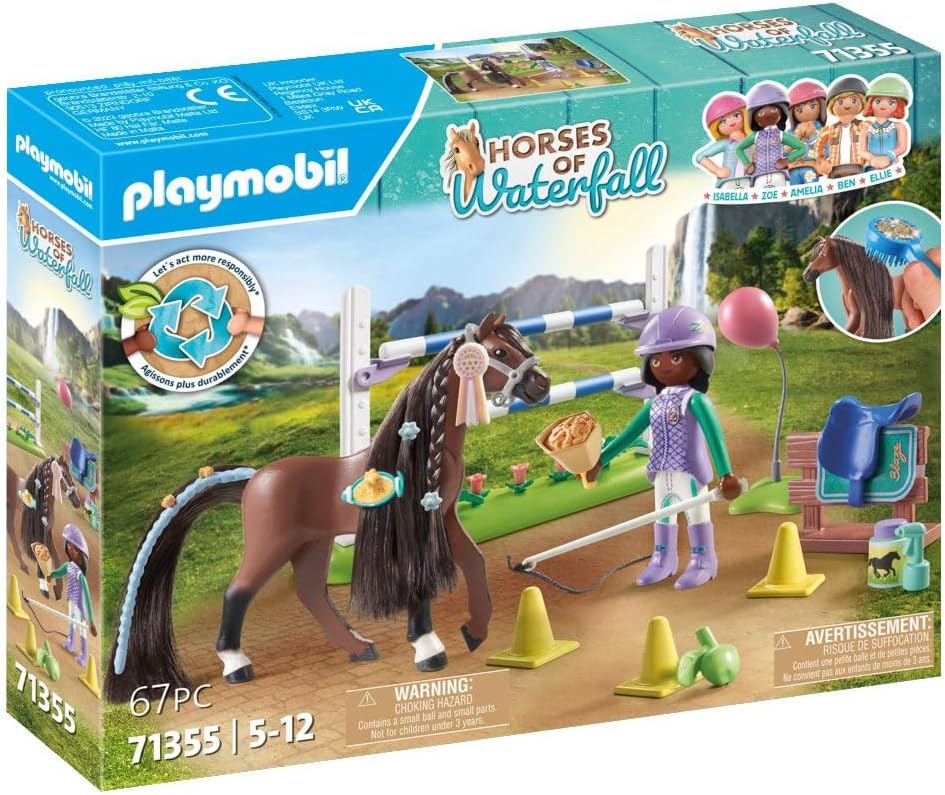 The Playmobil Jumping Arena with Zoe and Blaze 71355 set allows you to experience exciting horse jumping competitions.
