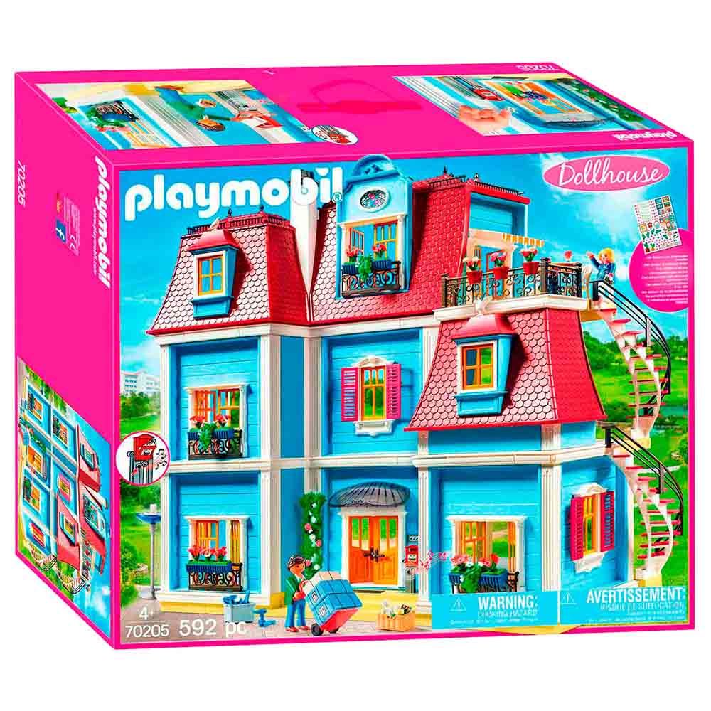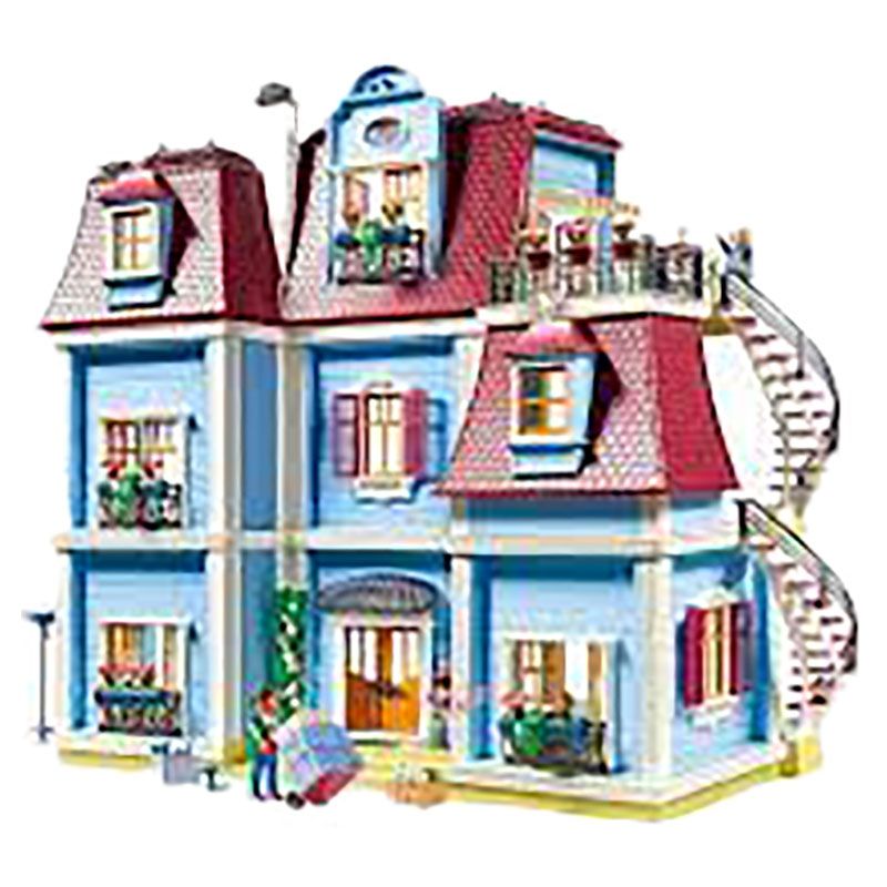 Welcome to your new home at the Large Dollhouse. Climb the spiral staircase to reach the second floor with many spacious rooms, or to go up to the rooftop terrace where you can sit at the table and look at the city from above. Listen for the functioning doorbell to know when you have visitors. It could be a delivery of packages or even a fresh bouquet of flowers! Add your own personal touches to the home with the included removable stickers and window boxes. Set includes two figures, three-level home, mailbox, window boxes with flowers, and other accessories. Furnish your new home with the different add-on rooms (70206-70212 – each sold separately). Requires 2 X AAA batteries. Dimensions: 26. 7 x 14 x 24. 5 in (LxWxH). Recommended for ages four and up. Warning. Choking Hazard. Small parts. Not for children under 3 years.