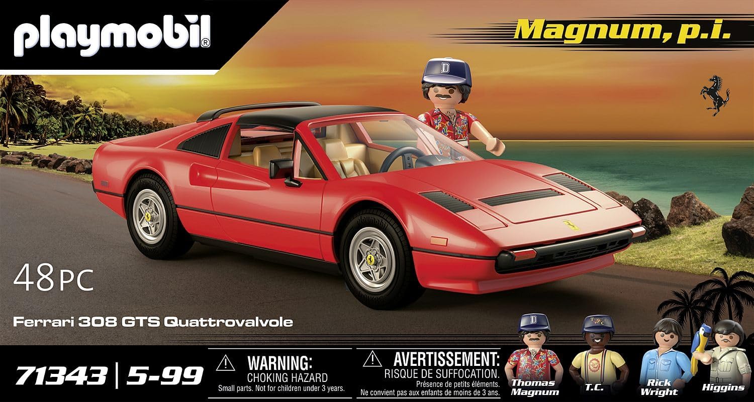 Relive the iconic adventures of Magnum, p.i. with the Playmobil Ferrari 308 GTS Quattrovalv (71343)! This detailed set brings the legendary car from the classic TV series to life, perfect for fans and imaginative play.