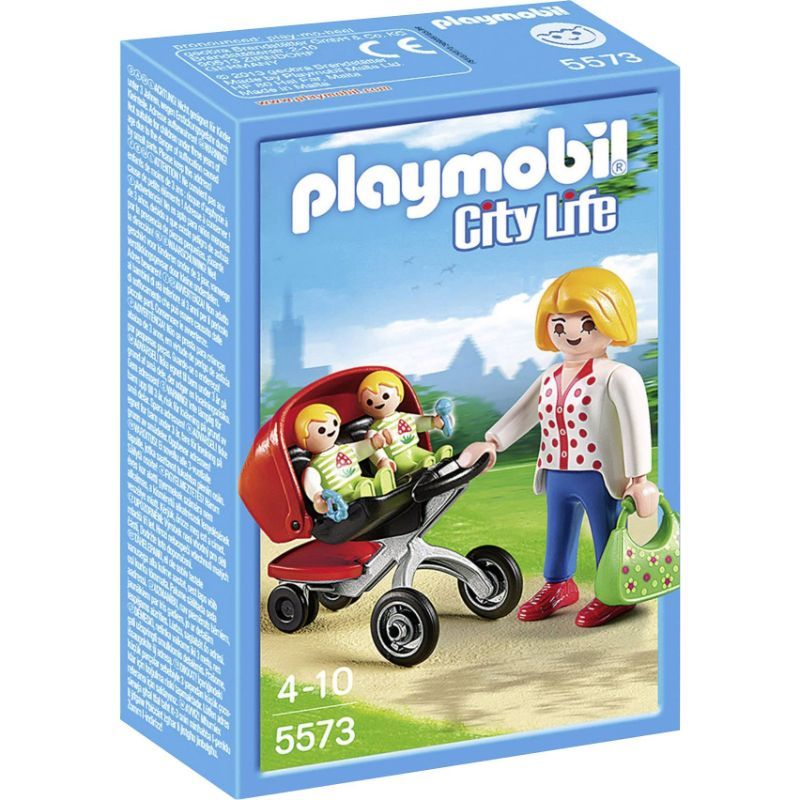 Style name: Preschool mother with twin stroller the playmobil mother with twin stroller features a mother with her twin babies out for a nice relaxing stroll through the park. The twins can be seen smiling happily both in matching outfits with their mother smiling lovingly while pushing them along with one hand and carrying a bag full of baby accessories in the other. The set comes complete with 1 playmobil mother with her twin babies and accessories. Directions no special directions.