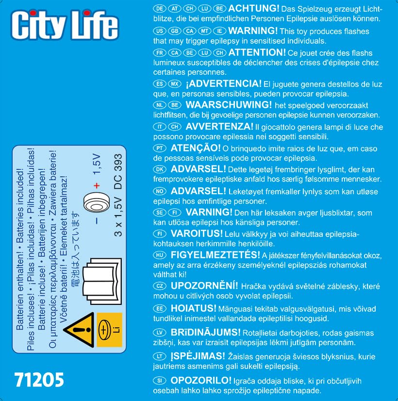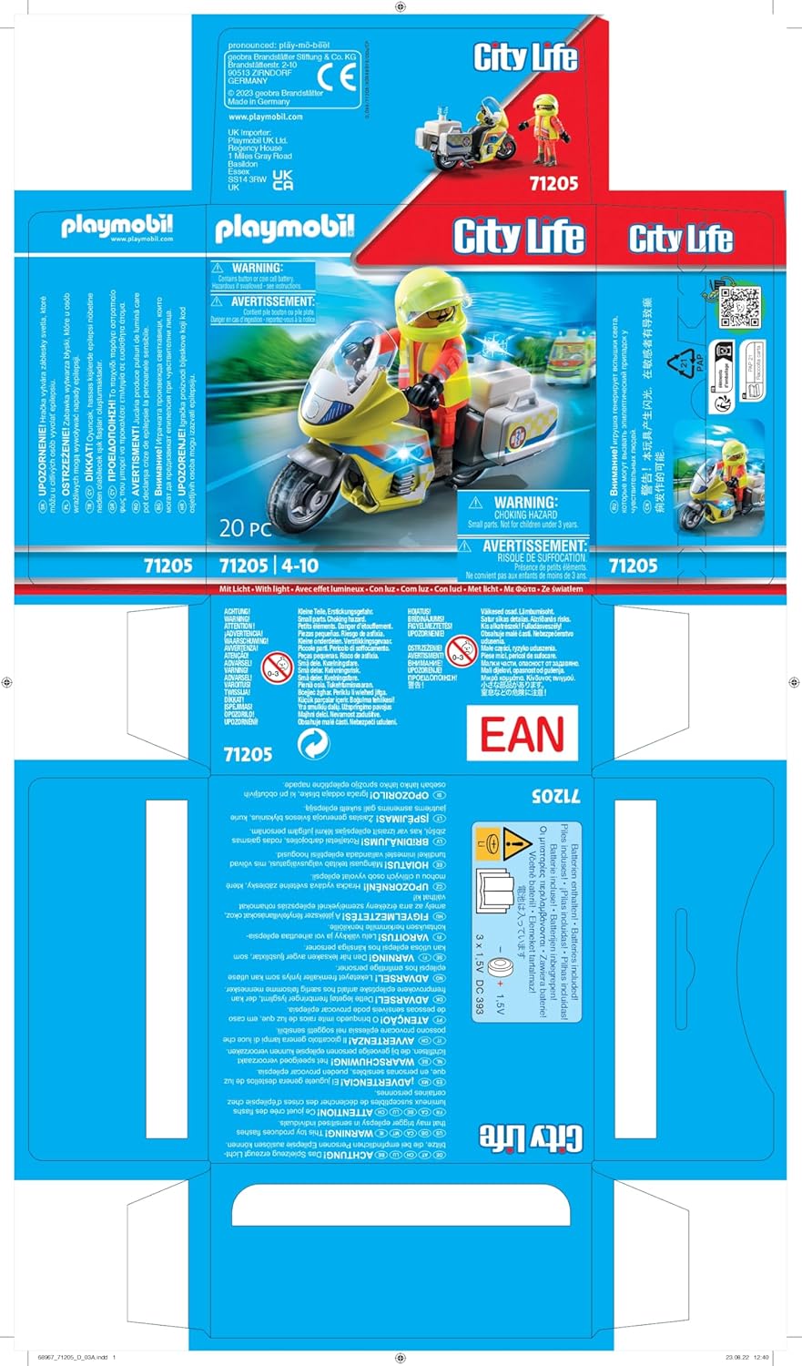 - Box contents: 20-piece toy figure set with instructions: 1 rescue motorcycle, 1 figure, 18 accessories, length x depth x height 11 x 5 x 7.5 cm, weight: 78 g, 71205