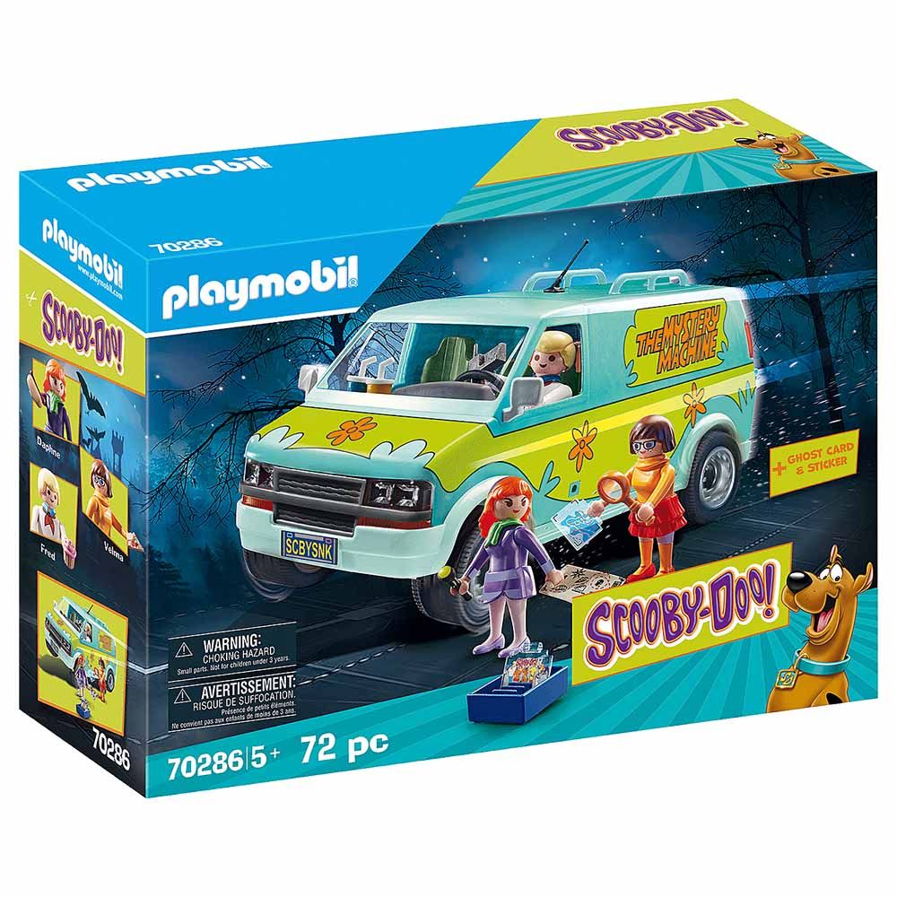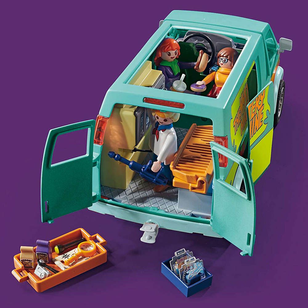 Time to solve some mysteries with the members of Mystery, Inc. in the SCOOBY-DOO! Mystery Machine! This psychedelic vehicle always has everything you need for your ghost-hunting adventures. Open the van’s rear doors to reveal an illuminated monitor, where you can insert your ghost cards to learn more about the mystery. Discover more ghost cards in each of the SCOOBY-DOO! Mystery Figures (Series 1) (70288 - sold separately). You also have your spyglass, a secret map that reveals the exact place you need to go, and Scooby Snacks – all essential for cracking the case. For even more fun, combine this set with the rest of the Playmobil SCOOBY-DOO! theme (#70286-70288 – sold separately)!