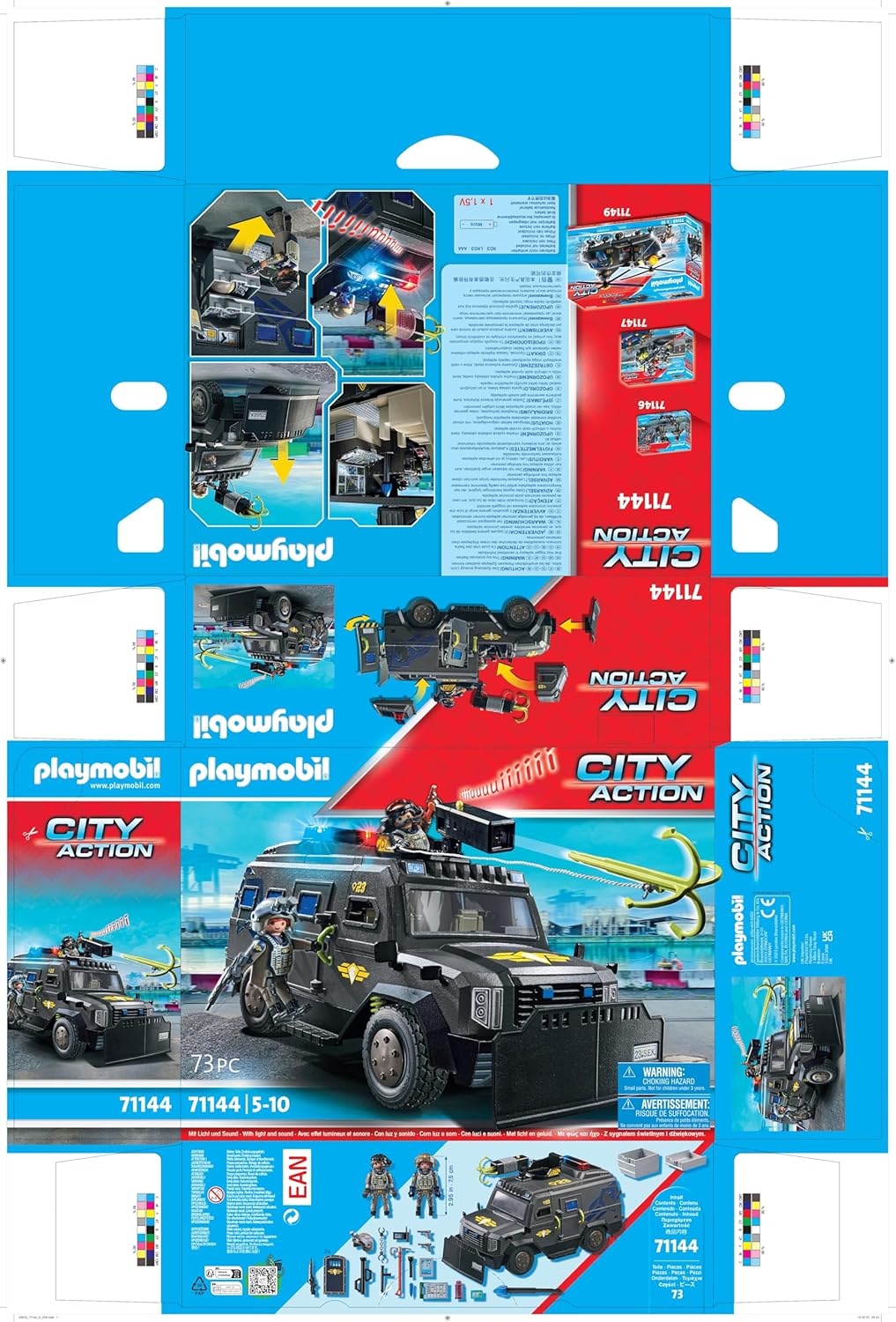 The Playmobil Tactical Unit All-Terrain Vehicle (item number 71144) is a modern SWAT truck designed for exciting police operations and imaginative play for children aged 5 and up.