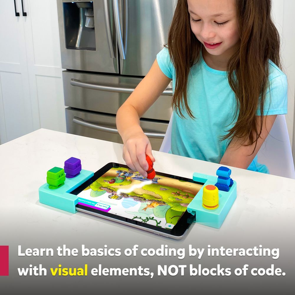 Tacto Coding from PlayShifu helps kids THINK code with exciting gameplay and bite-sized sequences. Designed by coder parents, Tacto makes coding fun and easy through interactions with VISUAL elements, NOT blocks of code. Kids drive the games on screen using real figurines, hands-on play that turns the tablet into a coding adventure!