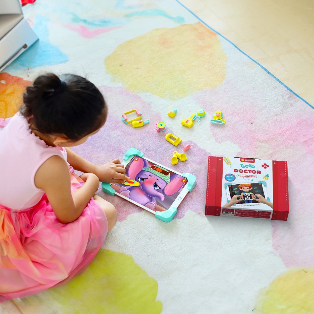 TACTO DOCTOR by PlayShifu is the world's first interactive doctor kit for kids. Take pretend play to the next level with real S.T.E.A.M. learning! This doctor playset for kids is a unique STEM toy that transforms your tablet into an interactive clinic and engages your child in educational screen-time. What a cool toy doctor kit to learn about the world of healthcare! This doctor kit for kids contains play pieces like a stethoscope, a thermometer, an X-ray, and more, to take care of your patients in the in-app clinic! It is the perfect STEM toy for your kids to wear the coats of life-saving doctors in story-driven games. Develop social-emotional intelligence, improve problem-solving skills, and learn the concepts of safety and first-aid with this smart toy doctor kit for kids.