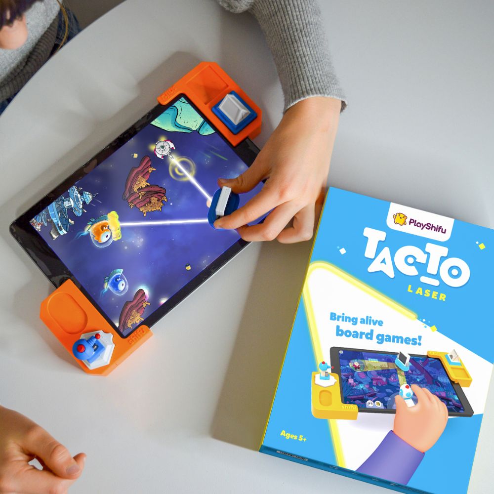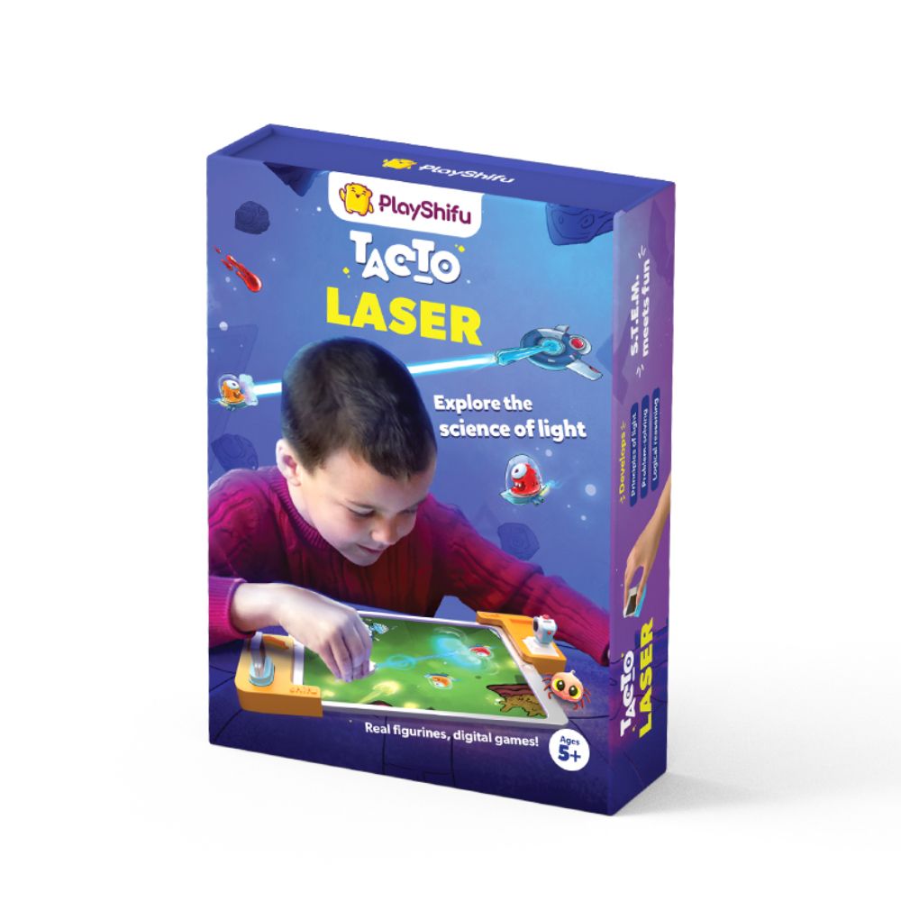 - TACTO LASER by PlayShifu turns your tablet into an interactive board game, based on physics of Light! Solve thrilling mysteries by lighting up the clues! Strategically choose your figurine to cross the obstacles. Use flashlight and mirror figurines on screen to light up the target. Split light into 7 colours with the prism figurine and use a color to solve puzzles.