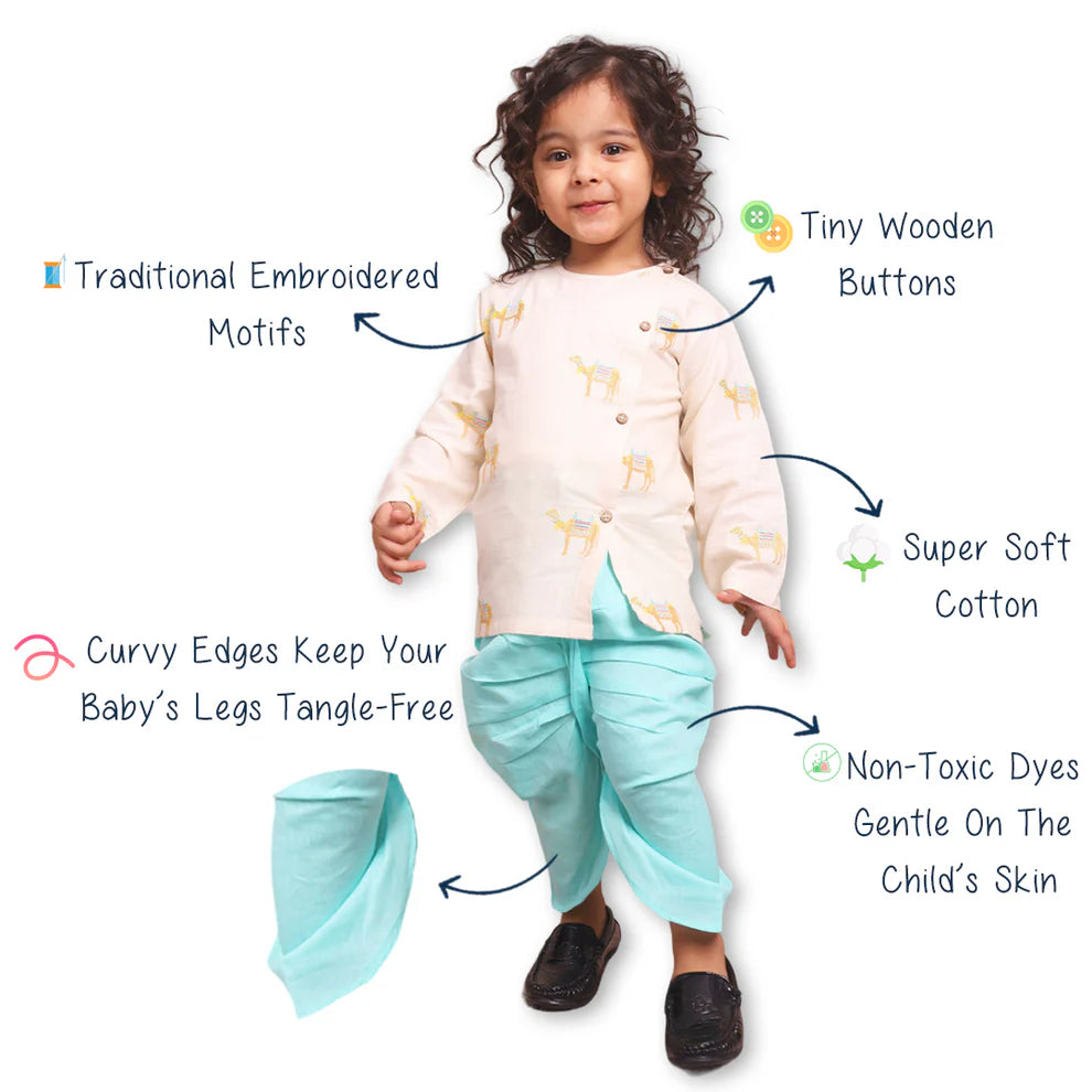 We at Polka Tots believe in making stylish & comfortable wear for your little ones. Our ethnic wear is crafted from super soft breathable cotton fabric that is extremely gentle on your baby.Ethnic wear for babies is suitable for various occasions such as weddings, festivals, family gatherings, and religious ceremonies. These outfits help to create a festive and celebratory atmosphere.