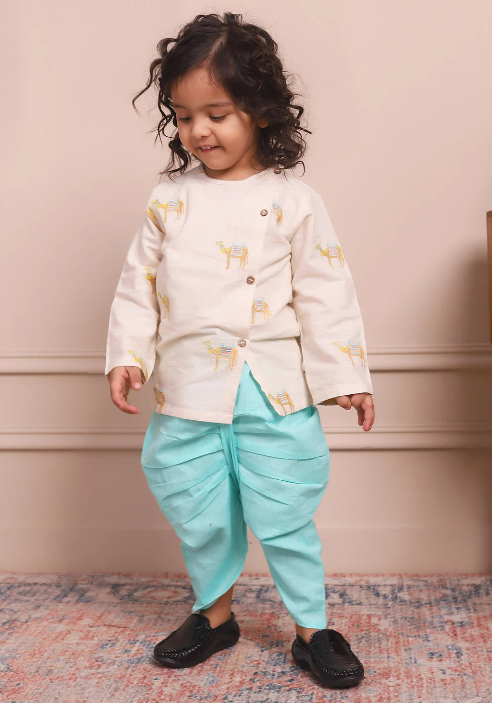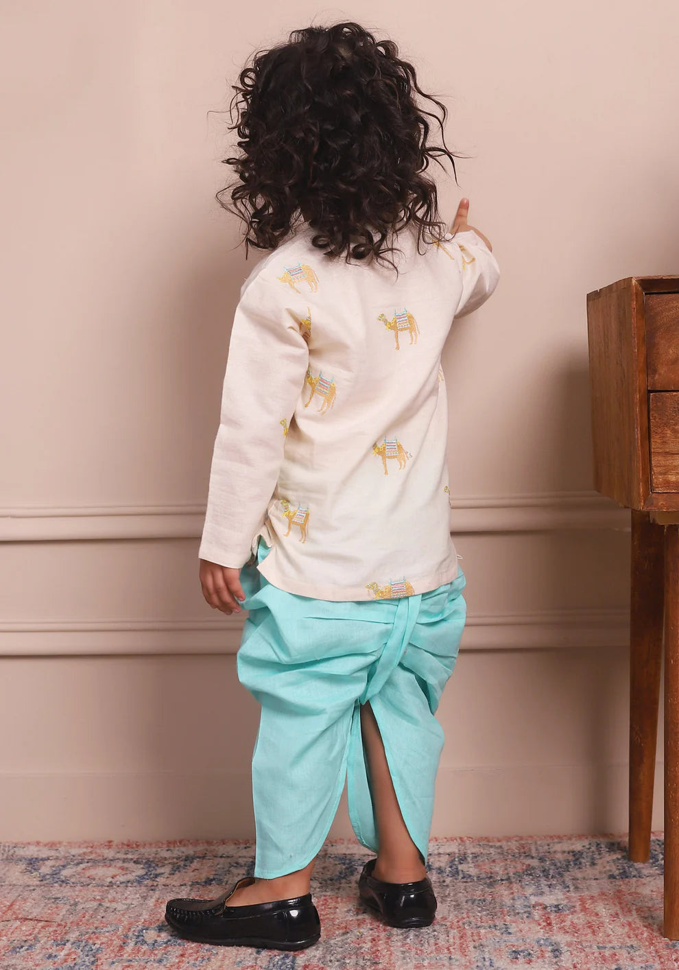 Polka Tots Full Sleeves Camel Embroidery Baby Angrakha Top With Dhoti - cream