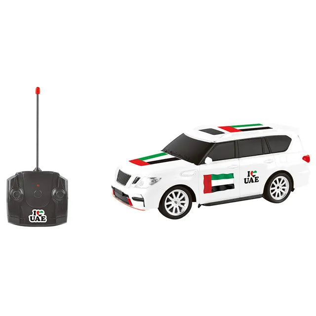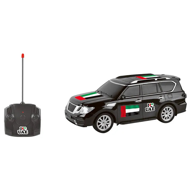 - Scale 1:12 remote controlled desert cruiser offroad car with UAE flag design.