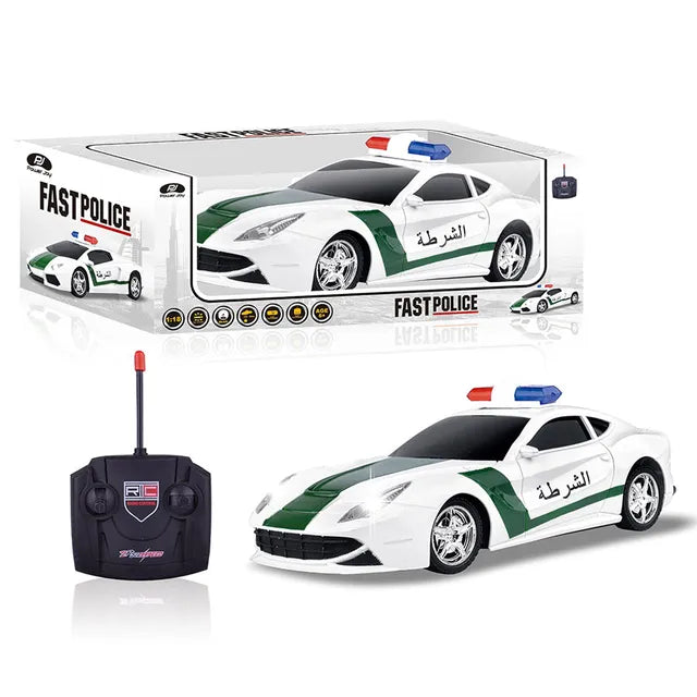 Power Joy RC Fast Police Car � Unleash your child's imagination by letting them play with Power Joy range! Full function remote controlled car toy. Scale: 1.18 with speed of 6 km/h. Ready to run. Made of certified strong ABS material, non-toxic, safe, durable, smooth surface without burrs. High speed with super suspension system for endless outdoor playing fun.