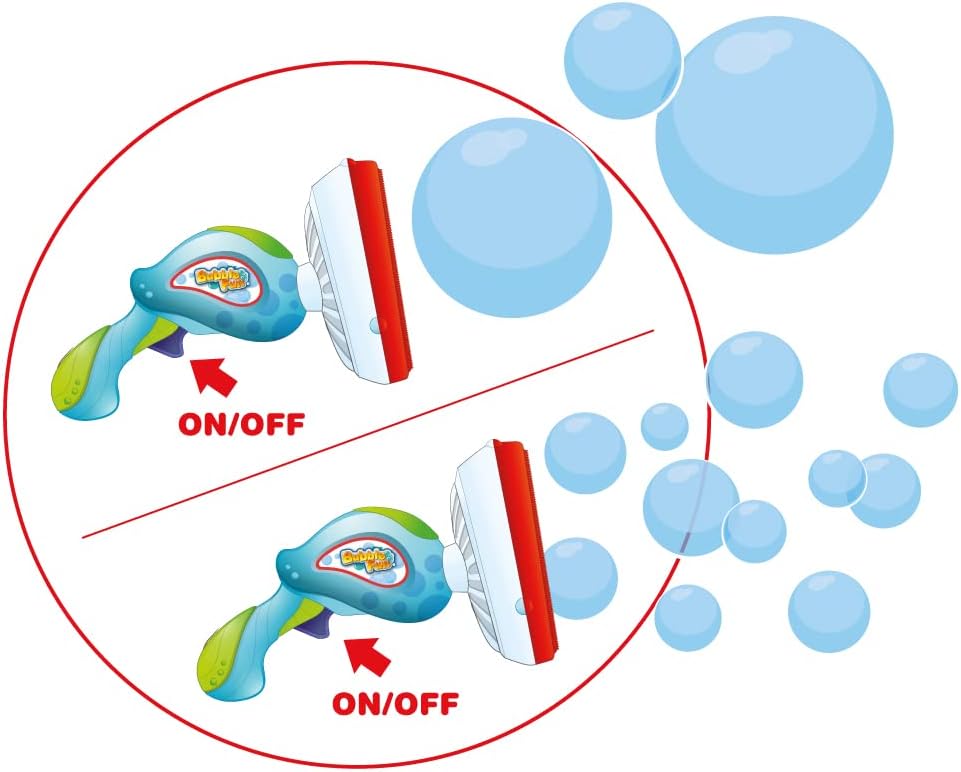Make huge bubbles with 2-in-1 Bubble Blower and handheld fan battery operated Jumbo Bubble Gun for bubble blaster party favors. This turbo-powered toy gun shoots hundreds of bubbles a minute, filling the air with the perfect little playtime orbs of summer. Great bubble blowing time!
