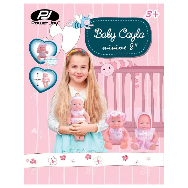 Power Joy's Baby Cayla minime lifelike baby doll stands 20cm tall. Baby Cayla has turnable neck, shoulders and waist. It will be your kid's bestfriend as Baby Cayla has the best smile and eyes.