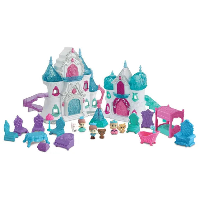 Made of harmless ABS material, non-toxic, safe, durable, smooth surface without burrs to ensure that children's fingers are not scratched. Gorgeous battery operated castle with lights&music.With 6 miniature accessories and 2 little ponny, 1 bird to build your little one's own dream castle.