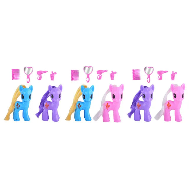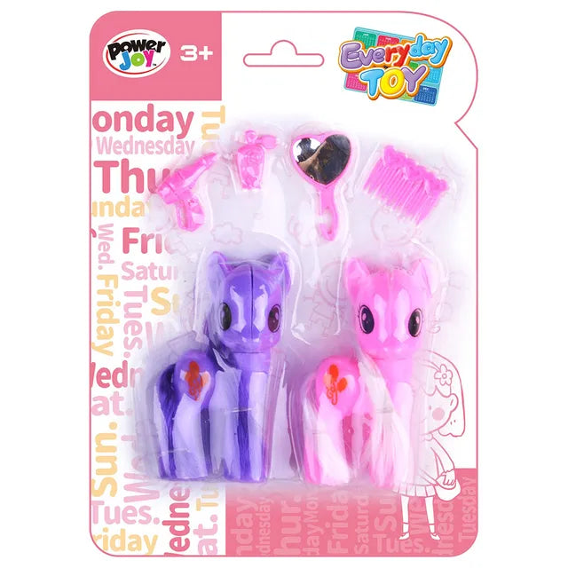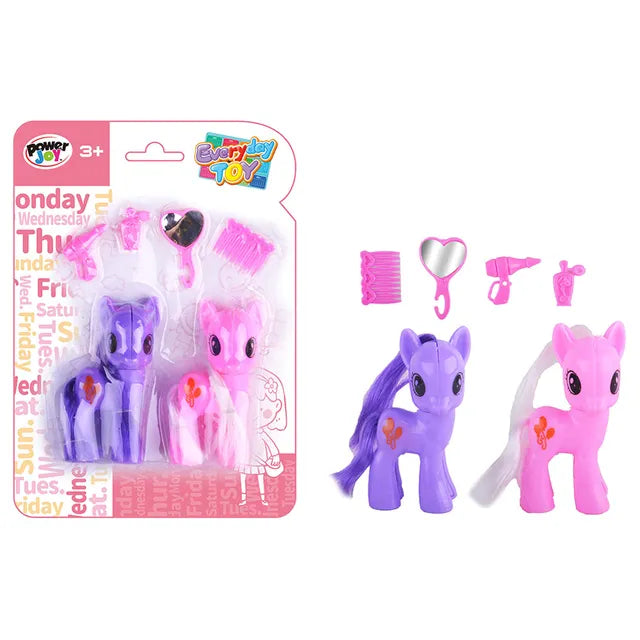 Two Horse Pony with a long mane of either violet or pink. The Pony Horse comes with four different accessories.