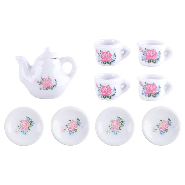 This classic tea set helps children practice their social skills, and is suitable for both indoor and outdoor play. The tea set includes a teapot, four cups and saucers. Each piece is painted with a decorative floral pattern, like a fine tea set.