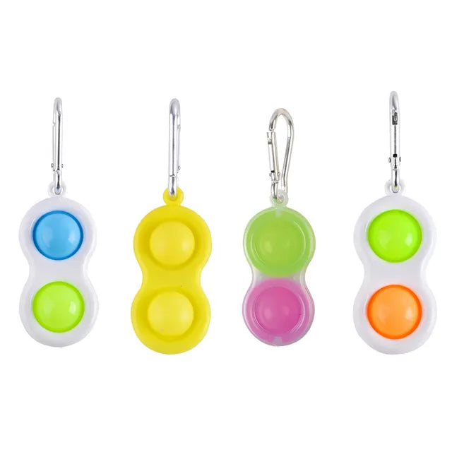 2 POP DIMPLES WITH KEYCHAIN. STRESS RELEASE SENSORY TOY. REDUCE STRESS, ANXIETY AND INCREASE FOCUS AND ATTENTION. CERTIFIED MATERIAL, SMOOTH WITHOUT BURRS FOR SAFE AND LONG POPING. SMALL SIZE WITH KEYCHAIN FOR ANYTIME ANYWHERE PRESSURE RELIEF