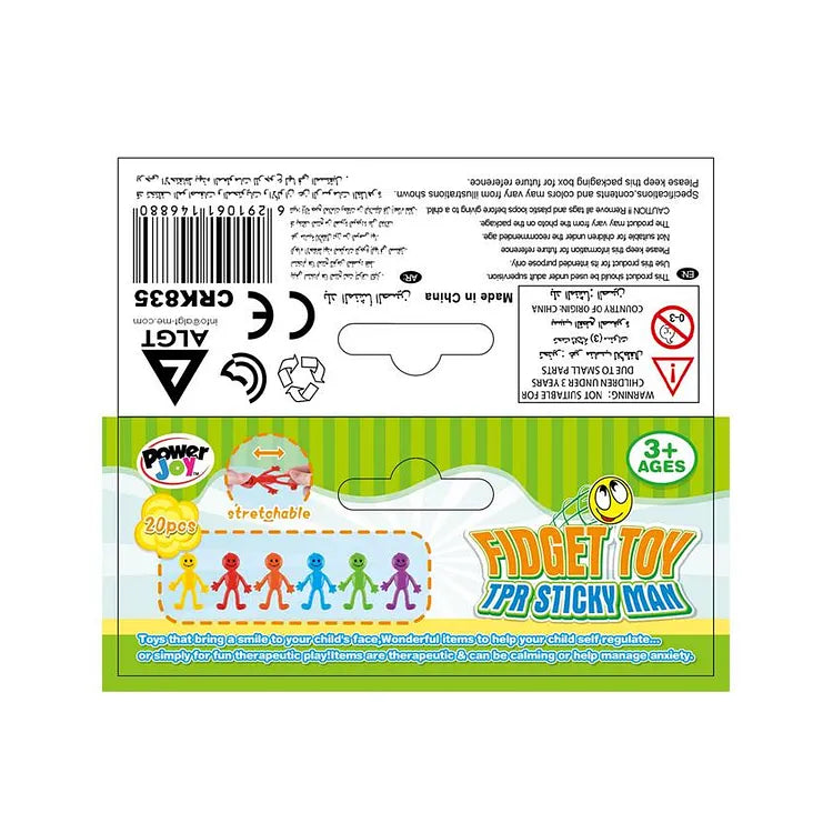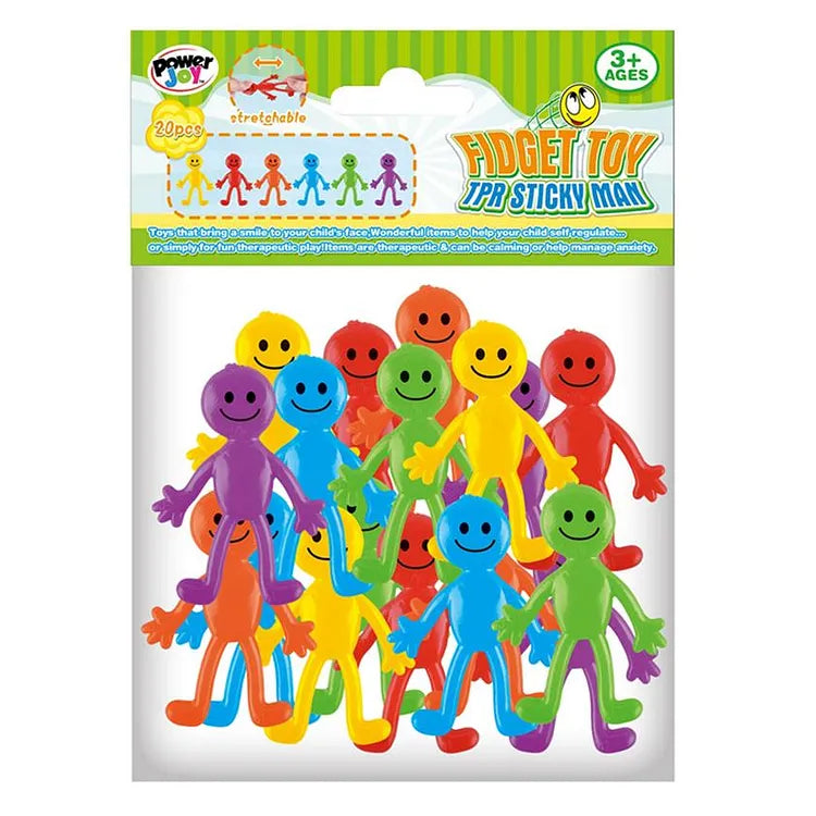The irresistibly fun Fidget Toy Sticky Man 20pcs set! These quirky sticky men are perfect for keeping your hands busy and entertained. Simply toss, flick, stick, or stretch these little guys to relieve stress and anxiety. Their sticky limbs allow them to cling to various surfaces, making them a versatile and interactive fidget toy. With 20 colorful and playful sticky men included in this set, you will have endless opportunities to fidget, play, and have a blast!
