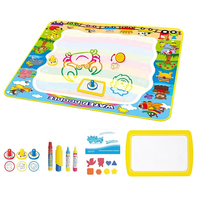 - LARGE WATER DOODLE MAT: 18-pieces water-based doodle mat 100x100cm.