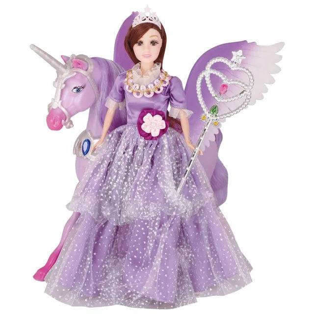 Include one high quality pegasus and one 30cm high fully articulated doll withTurnable neck/ waist ,bendable knees/shoulder. Have a fatasy magic fun with your magic pegasus and exquite fashion doll. Perfect gift for your little girl.