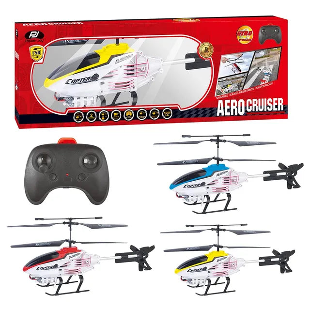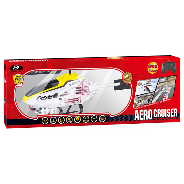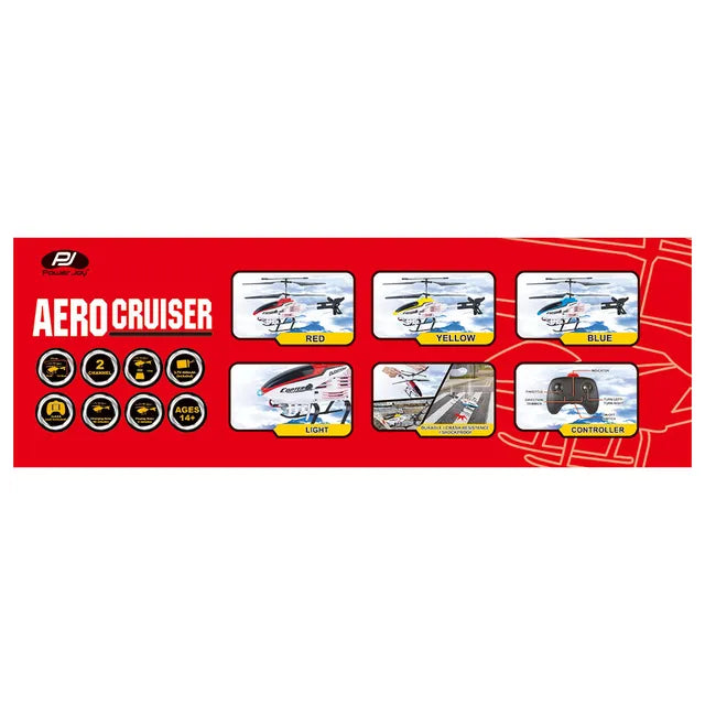 Power Joy RC Aero Cruiser is your ready-to-fly infrared-controlled 2 channel helicopter. 31cm helicopter with gyro for stable flying within 15meters range. It requires 3.7V 400 mAh lithium rechargeable battery pack with USB charger. Charging Time: 50 minutes. Made of certified strong ABS material, durable, crash resistance, shock proof. Perfect indoor or outdoor flying toy is a must-have for boys, girls, and RC helicopter-lovers!