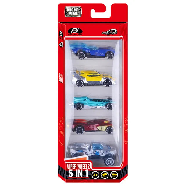 Power Joy V.Vroom Diecast Viper Wheelz, 5in1 gift pack die-cast with variety of free wheel alloy body viper cars. Best gift for your little loved one to play with & collect. Made with certified quality plastic and alloy, non-toxic, and safe for play.