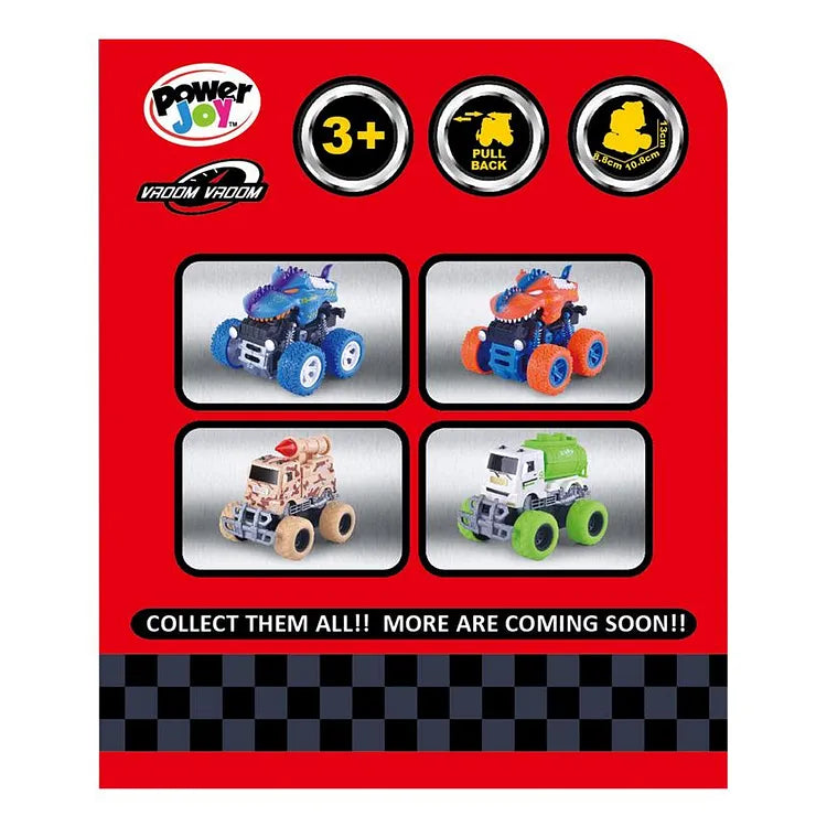These monster car toys feature a robust 4-wheel inertia drive, eliminating the need for batteries. Simply pull them back and release for exciting forward motion. Moreover, these cars can achieve a remarkable 360 rotating stunt when placed upright. Crafted from premium ABS plastic with anti-collision and shockproof features, they are safe for children and environment-friendly.