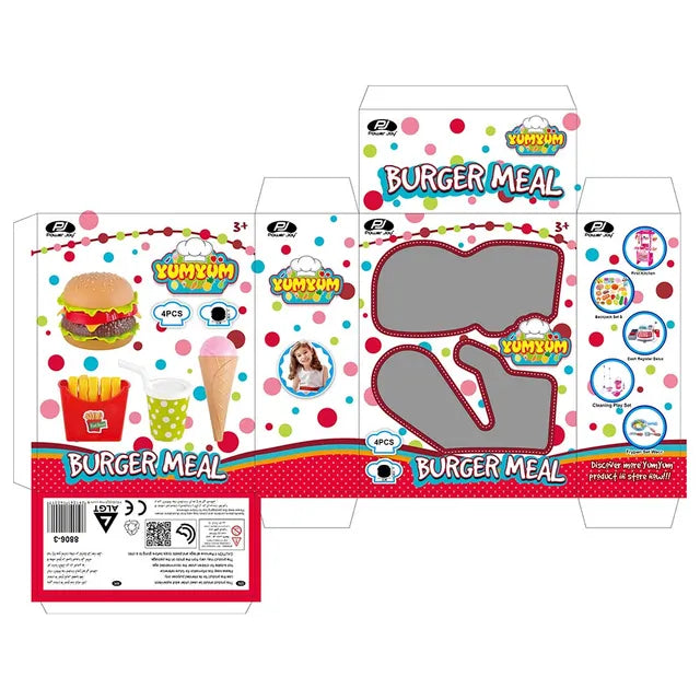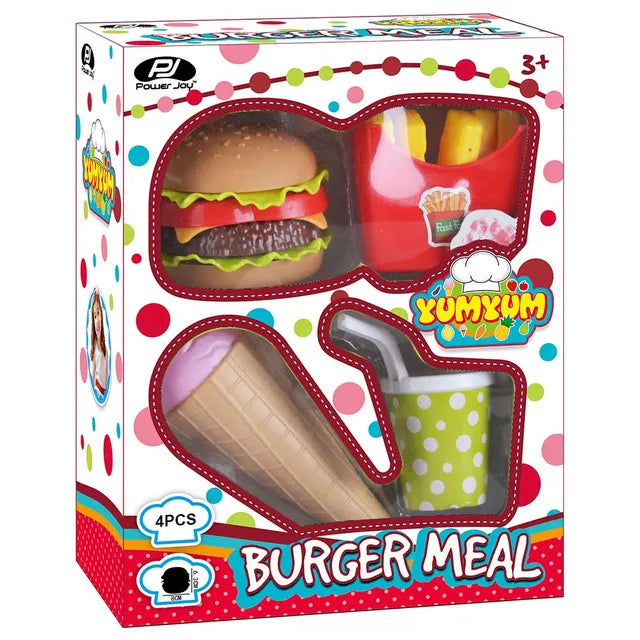 Wonderfull play meal with burger,ice cream, drink and chips. Made of harmless ABS material, non-toxic, safe, durable, smooth surface without burrs to ensure that children's fingers are not scratched. Enjoy burger meal fun anywhere, anytime.