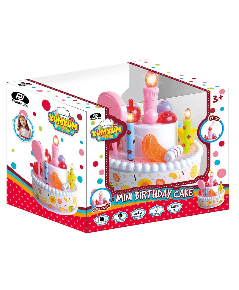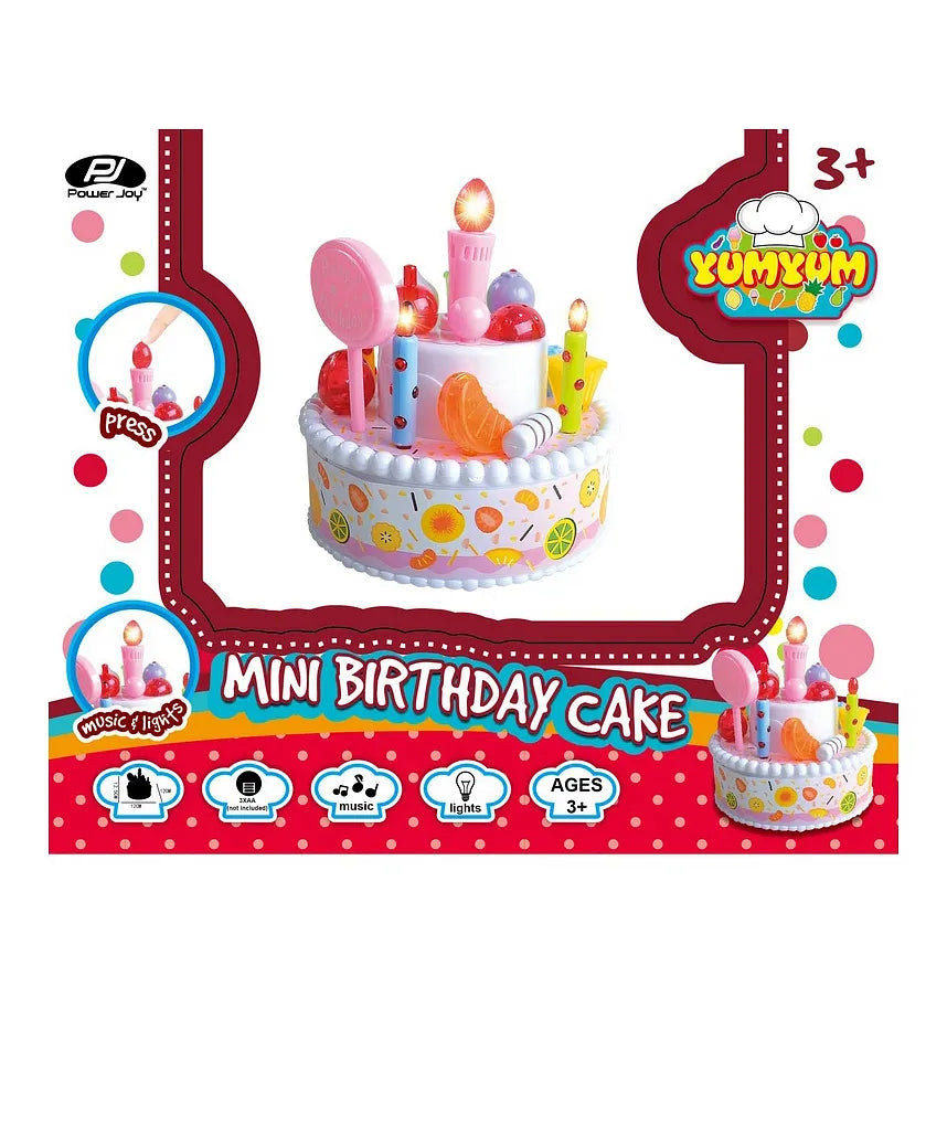 Battery opreated bithday cake with lights, press the candle, it will sing HAPPY BIRTHDAY song. With accessories of candies, fruits, candles. Perfect gift for your little loved one.