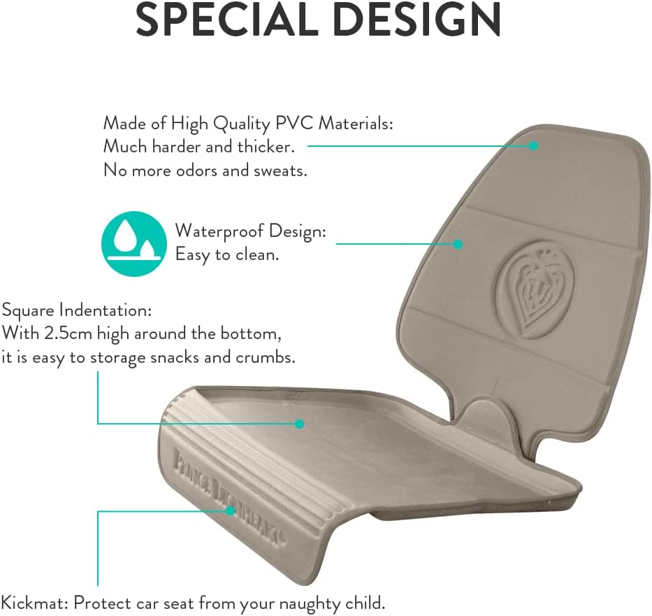 High density foam construction prevents depression damage caused by children's car seats, and protects upholstery from accidental spills and mess. The bottom tray keeps car seats in their proper position, and the kick plate protects the edge of the upholstery from shoe scuffs. Works with all ISOFIX compatible car seat systems and fits most cars.