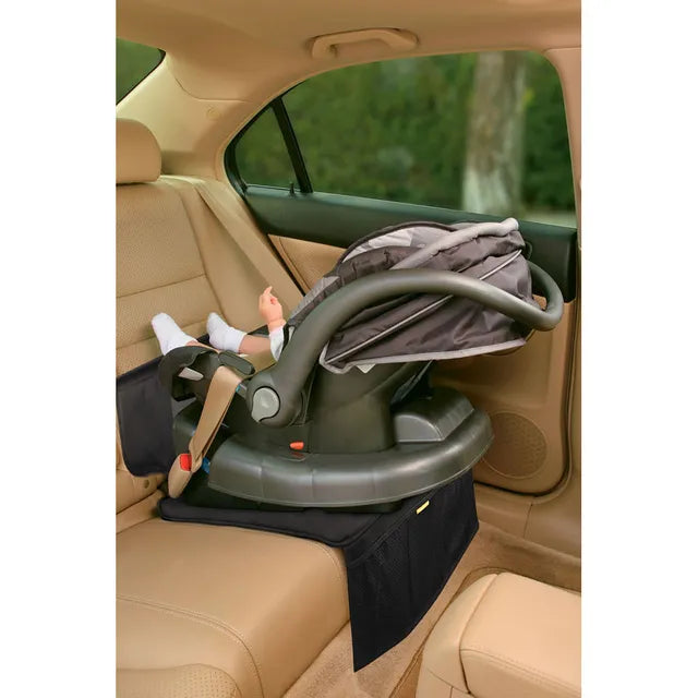 High density foam construction prevents depression damage caused by children's car seats, and protects upholstery from accidental spills and mess. Non-slip backing material keeps car seats secure. Front storage pocket is perfect for toys, wipes, cups and more and also protects the edge of the upholstery from shoe scuffs.