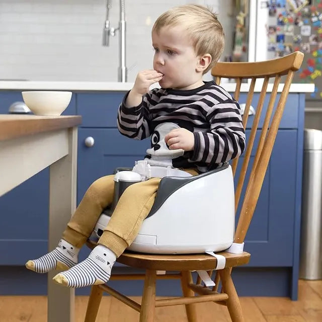 Instead of having little ones sit in a highchair far away from the family, you can give them a seat at the table with the BebePOD Booster. The tray is adjustable and removable making the BebePOD Booster a complete system that grows with your child from 3 months on. Your child will be securely strapped in with the three point harness and the dual strap system will keep the BebePOD Booster and Baby on the chair, whether indoors or out, home or away. This product is intended for children able to sit up unaided, and up to 5 years or a maximum weight of 60lbs/27kg.