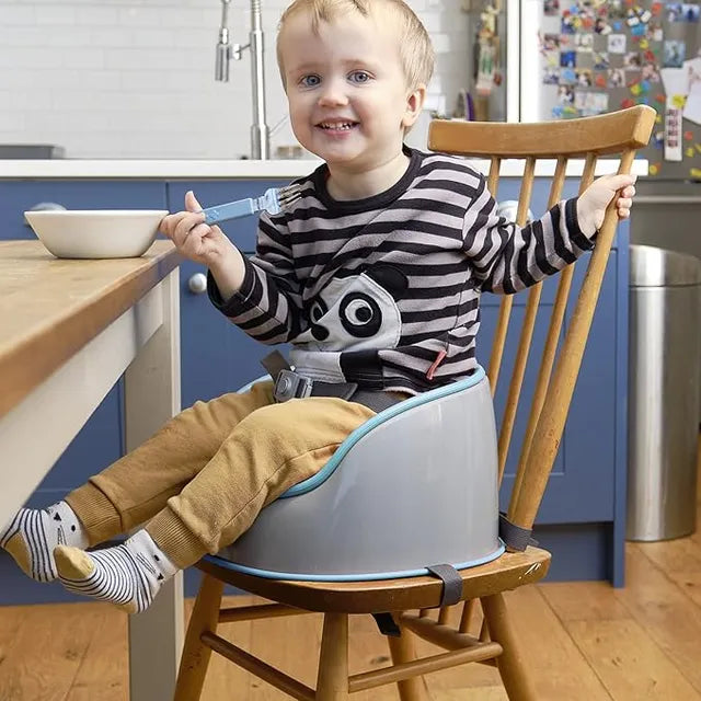 Prince Lionheart's BoosterPOD provides the ultimate comfort and safety. The soft, cushiony seat and practical base attach securely to both child and chair using its dual strap system. A comfortable three-point safety harness keeps the child secure, while the BoosterPOD attaches to an adult chair with rear and bottom straps. This product is intended for children able to sit up unaided, and up to 3 years or a maximum weight of 33 lbs/15 kg (ages 12 until 36 months).