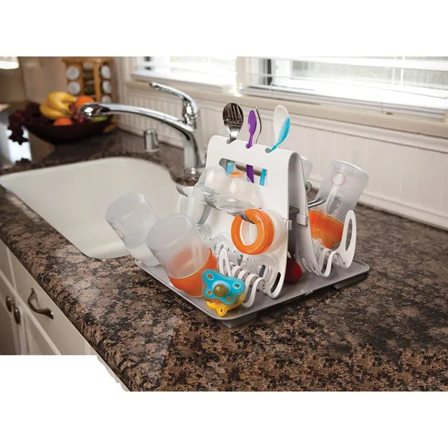 - Holds up to 16 bottles, parts and more. Grates hold collars, nipples, pacifiers, teething rings, sippy cup lids and valves.